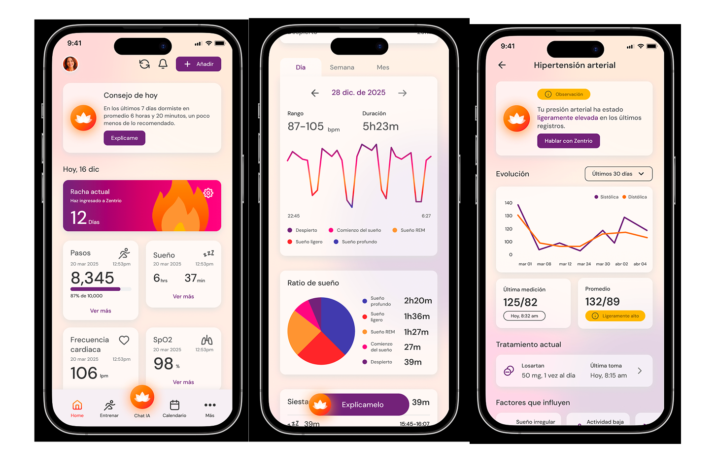Zentrio is a Chilean startup in early stage. They are creating an AI driven Health App for cronic patients, to help them track their habits, their health indicators, and get advice and insights from the AI to help them improve their life